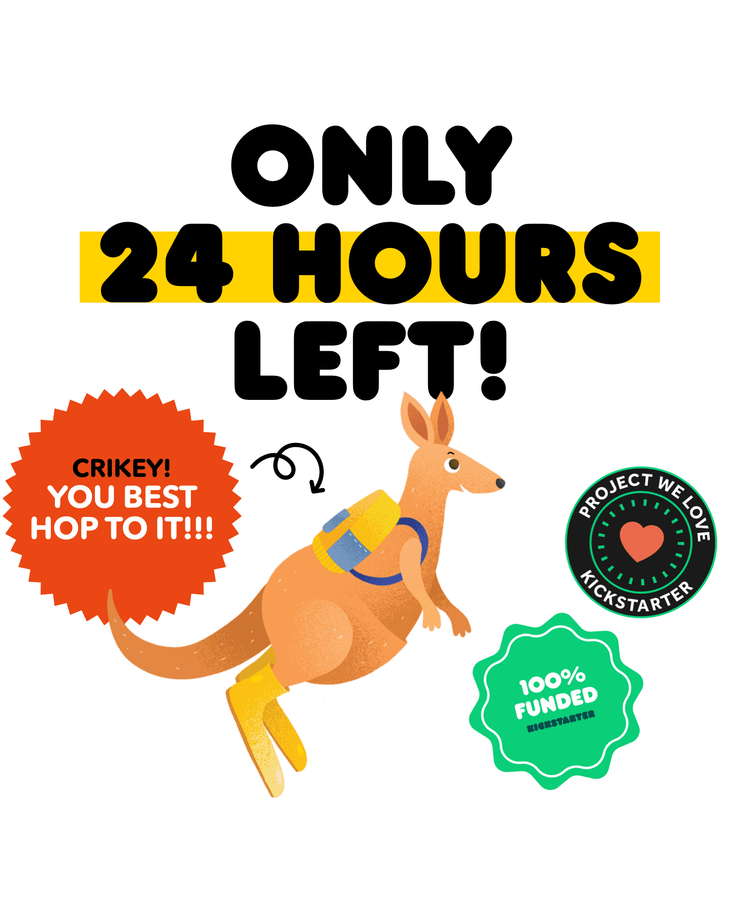 Kickstarter is a competitive, highly saturated platform. We leaned into the bright, playful spirit of the Clever Noodle brand to grab attention and get backers excited about the Kangaroo Cravings gameplay.