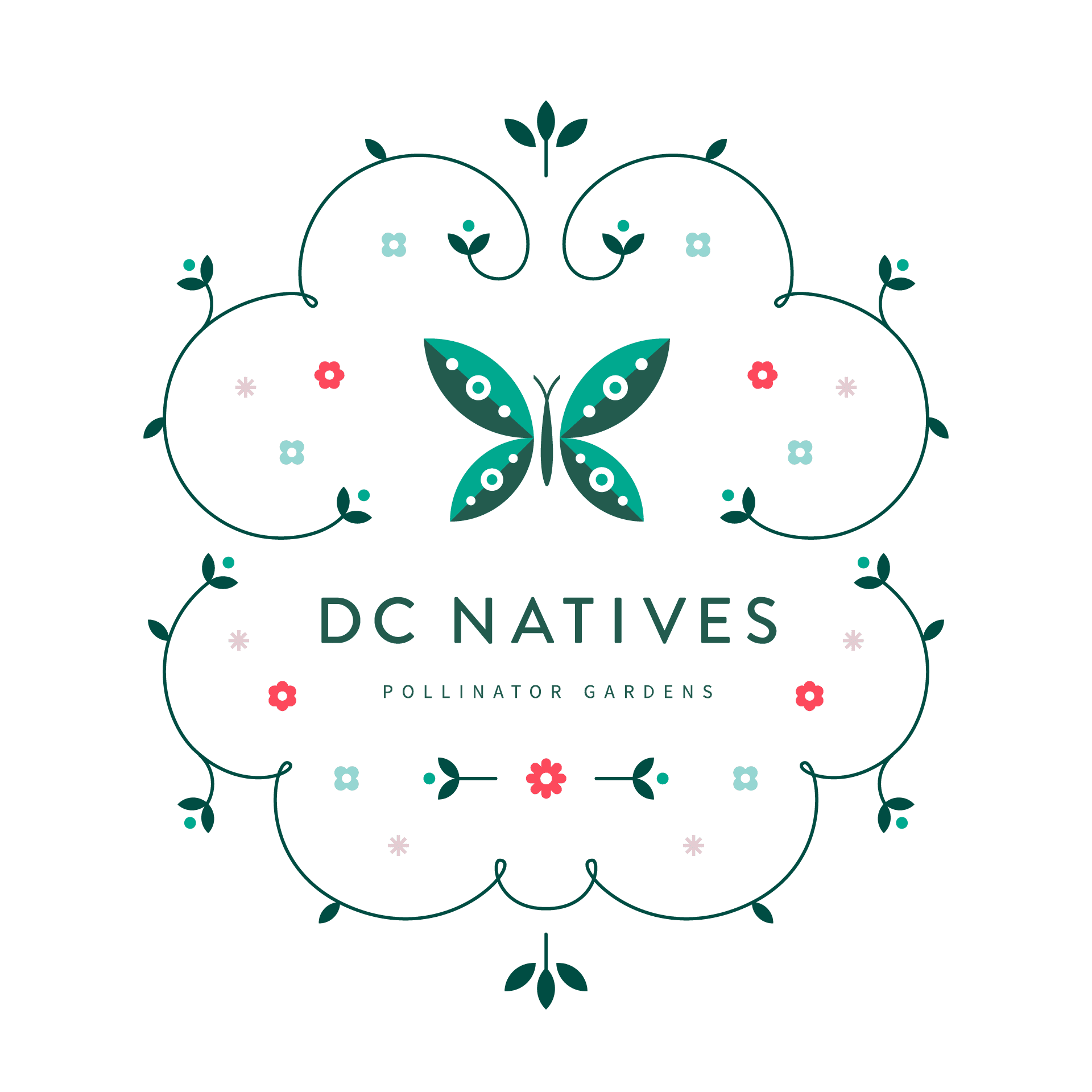 The primary mark is a butterfly whose shape echoes the DC monogram. Its four wings map to the four quadrants of the city, a simple image that holds both the beauty of DC Natives’ work and the dual communities they serve: the city and its hard-working pollinators.